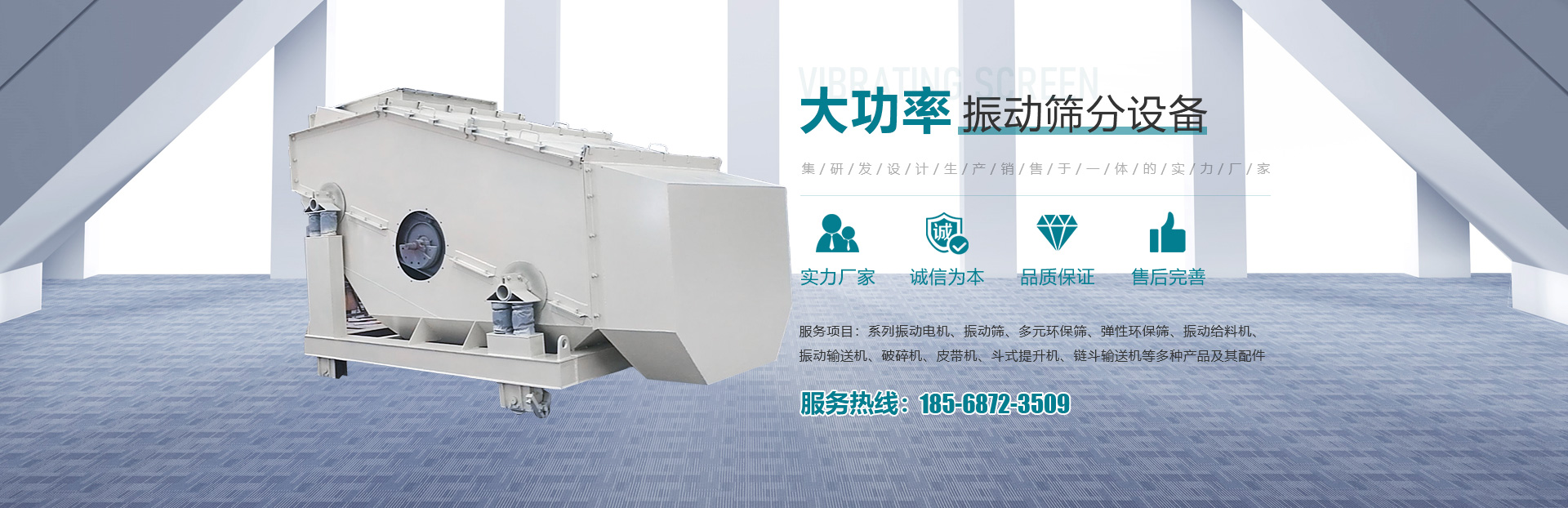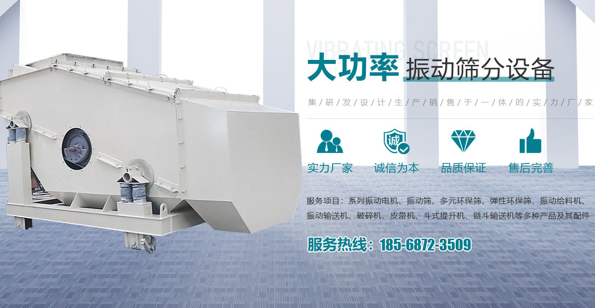 - 主要產品有系列振動電機、振動篩、多元環(huán)保篩、彈性環(huán)保篩、振動給料機、振動輸送機、破碎機、皮帶機、斗式提升機、鏈斗輸送機等多種產品